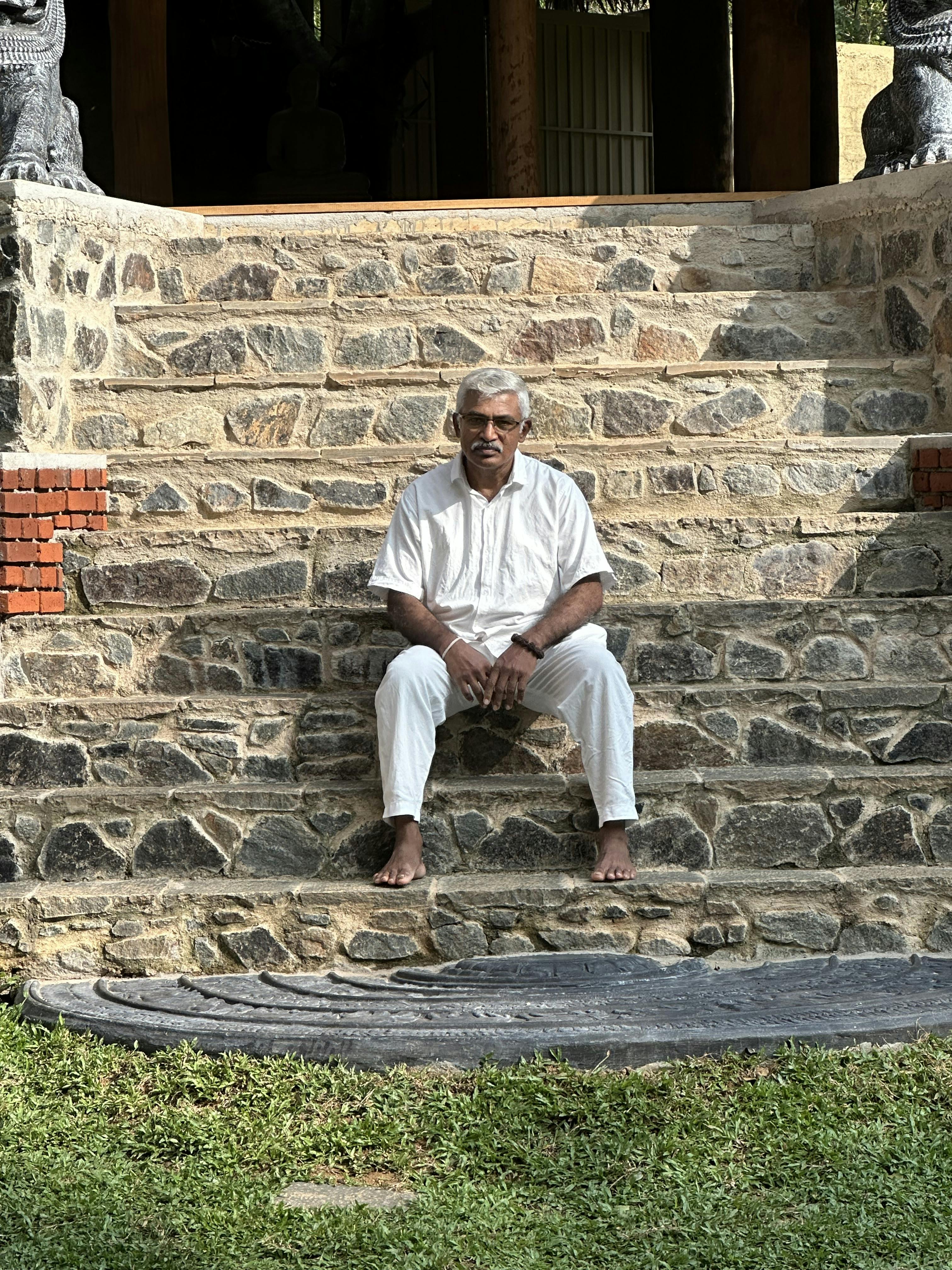Manoj Premakumara Abeyrathne teaches Hatha Yoga and gently guides you into meditation. His serene presence and inner wisdom can be felt in every session.
